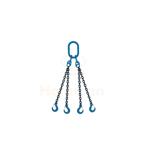 Four-leg chain slings are crane apparatus designed for stable lifting of heavy loads. These products are used for lifting loads with links in four places with chain and hook connection on each leg.